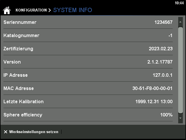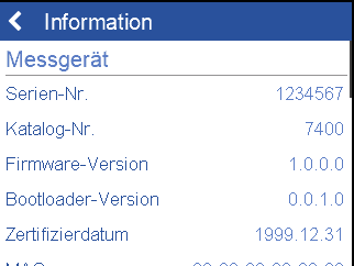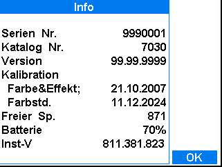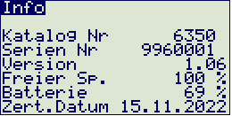 Die Seriennummer wird zum einen beim Einschalten des Geräts angezeigt, zum anderen kann sie über das Menü abgefragt werden. Gehen Sie dazu wie folgt vor: